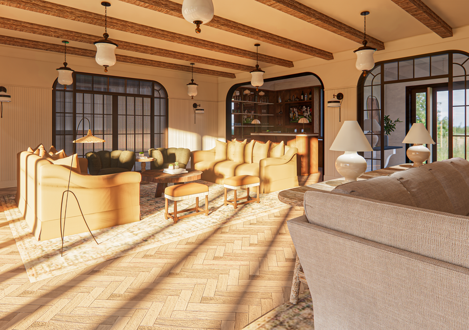 My favorite tool is ZOOM conference - it enables both the designer and myself the control of my mouse and a screen share. This is as close as being in the same office, as we can work in real time on furniture layout, render textures, design ideas, and more.